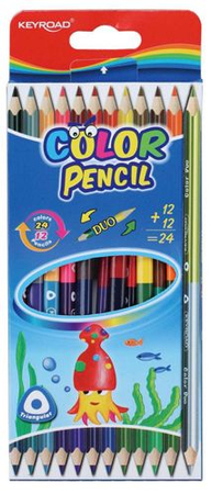 Kredki ołówkowe KEYROAD, trójkątne, dwustronne, 12szt., mix kolorów