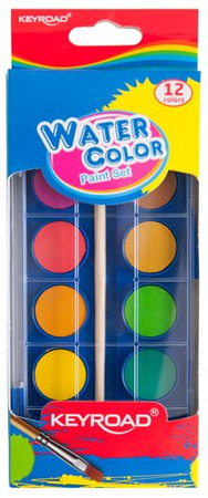 Farby akwarelowe KEYROAD, zawieszka, z pędzelkiem, 12 kolorów