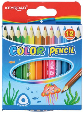 Kredki ołówkowe KEYROAD Mini, trójkątne, 12szt., mix kolorów