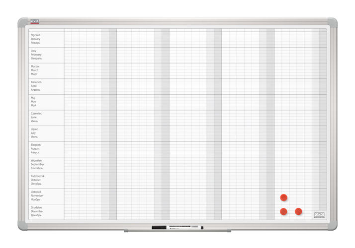 Na powierzchni znajduje się stały nadruk terminarza rocznego, który ułatwia planowanie zadań indywidualnych jak i zespołowych w określonych odstępach czasowych.