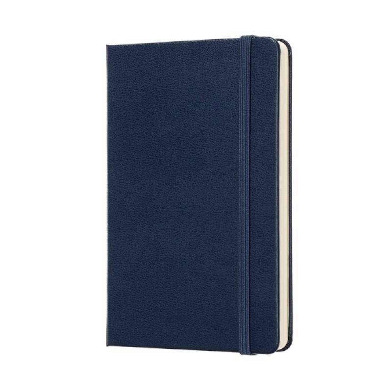 Notes Moleskine Classic P (9x14 cm) gładki, twarda oprawa,sapphire blue, 192 strony Legendarna kolekcja notesów w różnych kolorach i wielkościach znana na całym świecie. Do produkcji został użyty standardowy bezkwasowy papier certyfikowany FSC® w kolorze kości słoniowej. Zrobiony z barwionej masy, doskonale nadaje się do zapisywania notatek długopisem oraz ołówkiem. FUNKCJE twarda okładka zaokrąglone rogi elastyczne zamknięcie – gumka pasująca do koloru okładki zakładka – wstążka rozszerzalna kieszeń wewnętrzna z tektury i tkaniny papier o gramaturze 70 g/m² w kolorze kości słoniowej ROZMIAR: P 9 × 14 cm 192 strony UKŁAD: gładki