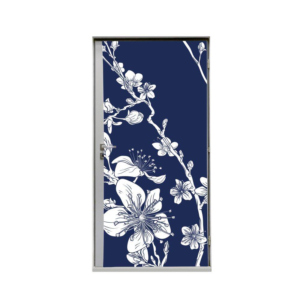 Door Wrap 80 cm Japanese Cherry Blossom Blue