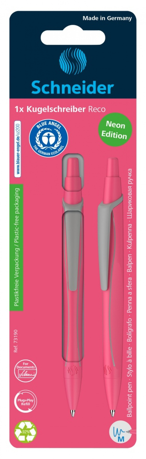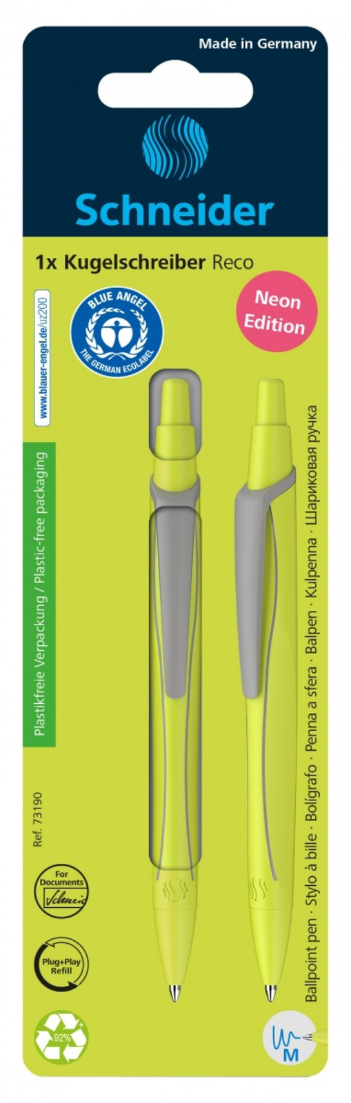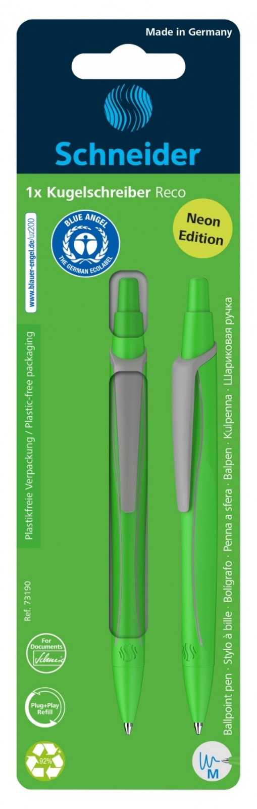 pierwszy na świecie długopis, który został nagrodzony najbardziej znaną ekoetykietą "Blue Angel", oznaczającą szczególnie przyjazną dla środowiska i oszczędzającą zasoby produkcję