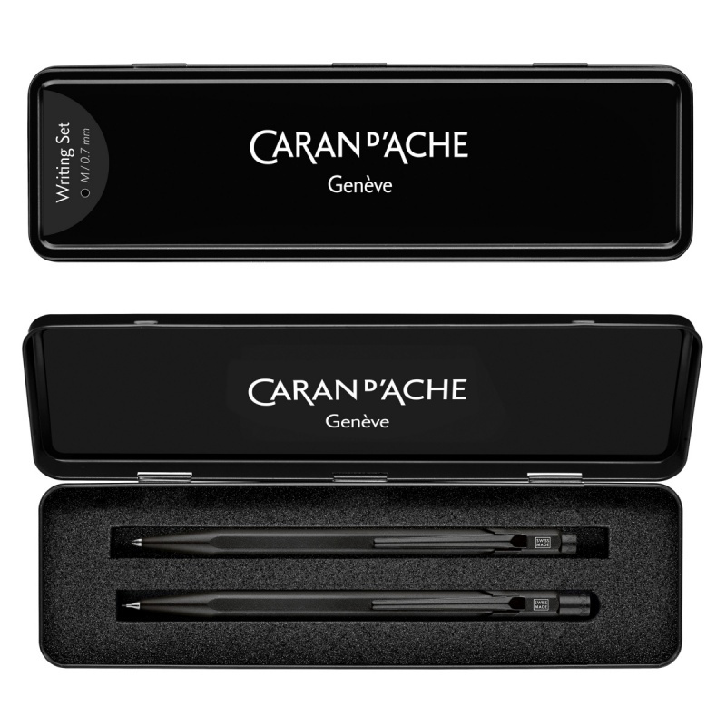 Zestaw upominkowy szwajcarskiej marki Caran d’Ache – długopis i ołówek Black Code.
