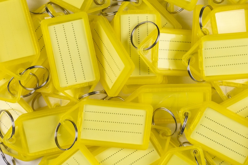 wyposażone w etykietkę opisową oraz kółeczko o średnicy 15mm łączące zawieszkę z kluczem