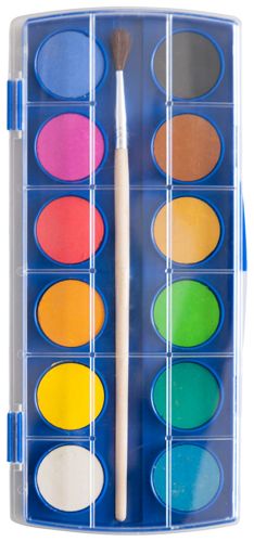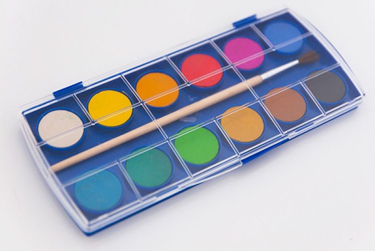 szkolne farby akwarelowe, w plastikowym pudełku