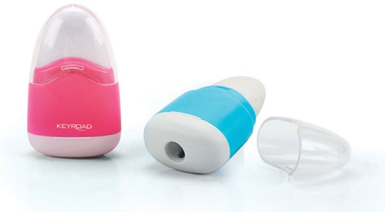 Temperówka KEYROAD Navy, plastikowa, pojedyncza, z gumką, pakowane na displayu, mix kolorów