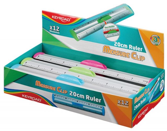 Linijka z uchwytem KEYROAD Measure Clip, 20 cm, pakowane w display, mix kolorów