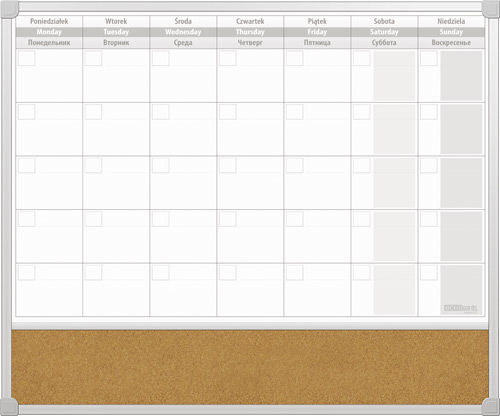 - Na powierzchni znajduje się stały nadruk terminarza do planowania miesiąca