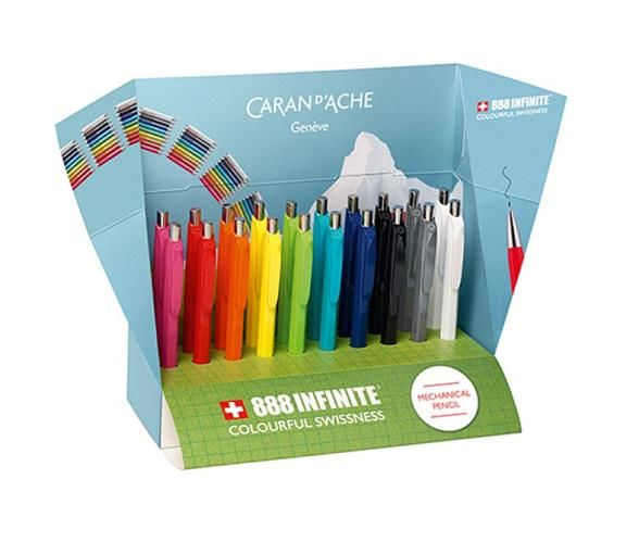 display ołówków automatycznych Szwajcarskiej marki Caran d’Ache z kolekcji INFINITE