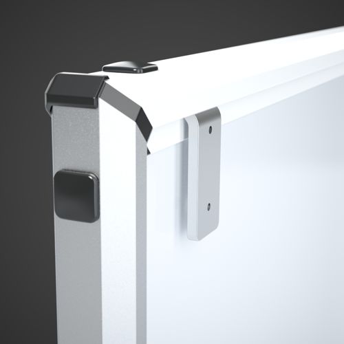 • Mocowanie do ściany za pomocą zawieszek mocowanych do tylnej części profilu ramkowego oraz profilu bazy półki (istnieje możliwość montażu tablicy na bazie jedynie profilu ramkowego)