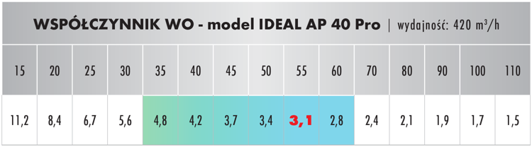 | objaśnienie: | **wartości dotyczą odpowiednio trybów: nocny, niski, średni, wysoki oraz turbo. |