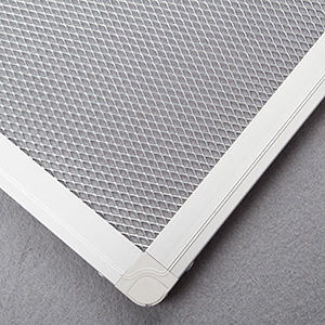 - Rama wykonana z profilu aluminiowego UKF w kolorze srebrnym, wykończona eleganckimi, popielatymi narożnikami