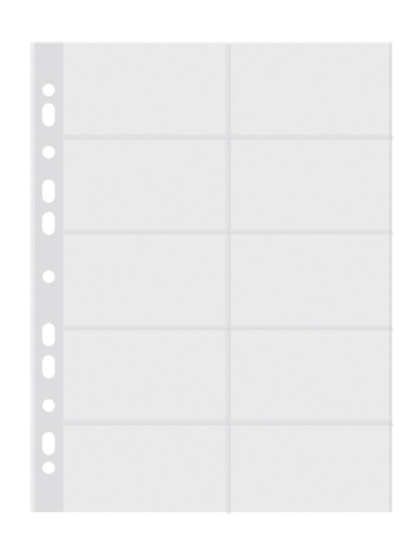 wykonane z gładkiej ekologicznej folii polipropylenowej o grubości 60μm specjalnie wzmocniony brzeg antystatyczne krystaliczne, transparentne przeznaczone na 10 jednostronnie lub 20 dwustronnie umieszczonych kart wizytowych kieszonki mieszczą wizytówki o rozmiarach do 95x60mm ilość dziurek do wpięcia: 11 wymiar zewnętrzny: 225x308mm wyprodukowane w fabryce posiadającej certyfikat kontroli jakości GB/T 19001-2016/ISO 9001:2015 kolor transparentny