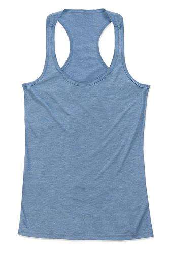 T-shirt bez rękawów dla kobiet SST9960. - 65% poliestru / 35% wiskozy, melanż o splocie single jersey - gramatura 140 g/m2 - wycięcie na plecach - obszycie na ramionach - szeroki dekolt z nieobrębionym brzegiem i wąską taśmą z tej samej dzianiny - ramiączka zapewniające swobodę ruchu