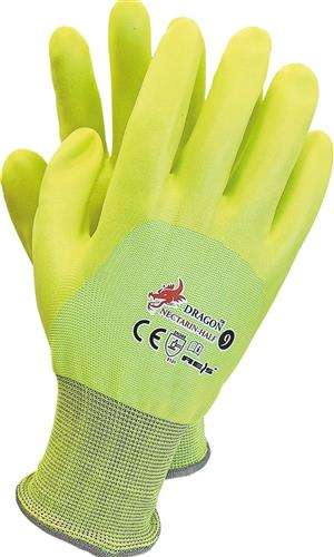 - część chwytna i do połowy część wierzchnia oblewane cienką warstwą nitrylu w żótym kolorze