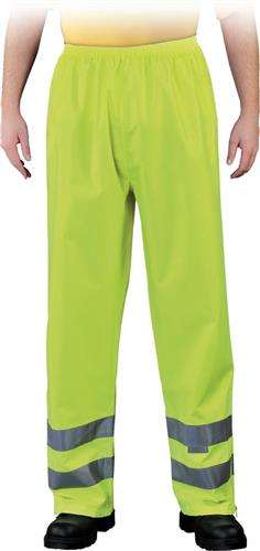 Spodnie przeciwdeszczowe z pasami odblaskowymi.