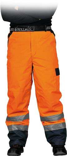 Spodnie do pasa ocieplane wykonane z fluorescencyjnej tkaniny.
