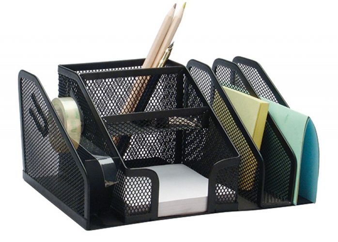 przybornik na biurko, wykonany z metalowej siateczki powlekanej lakierem