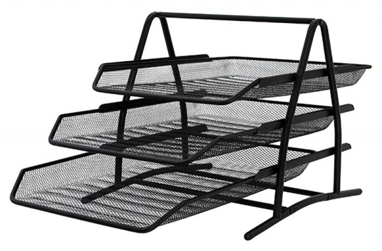 zestaw trzech wysuwanych szuflad wykonany z metalowej siateczki powlekanej lakierem